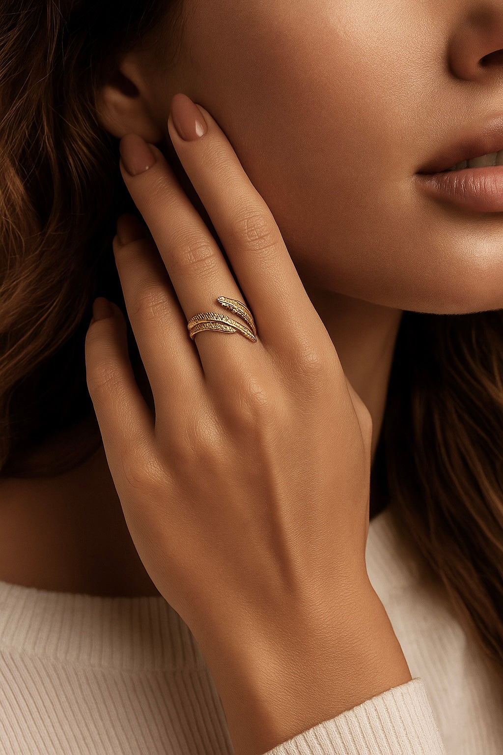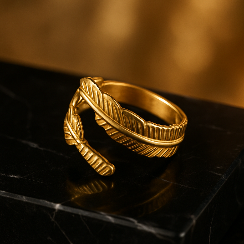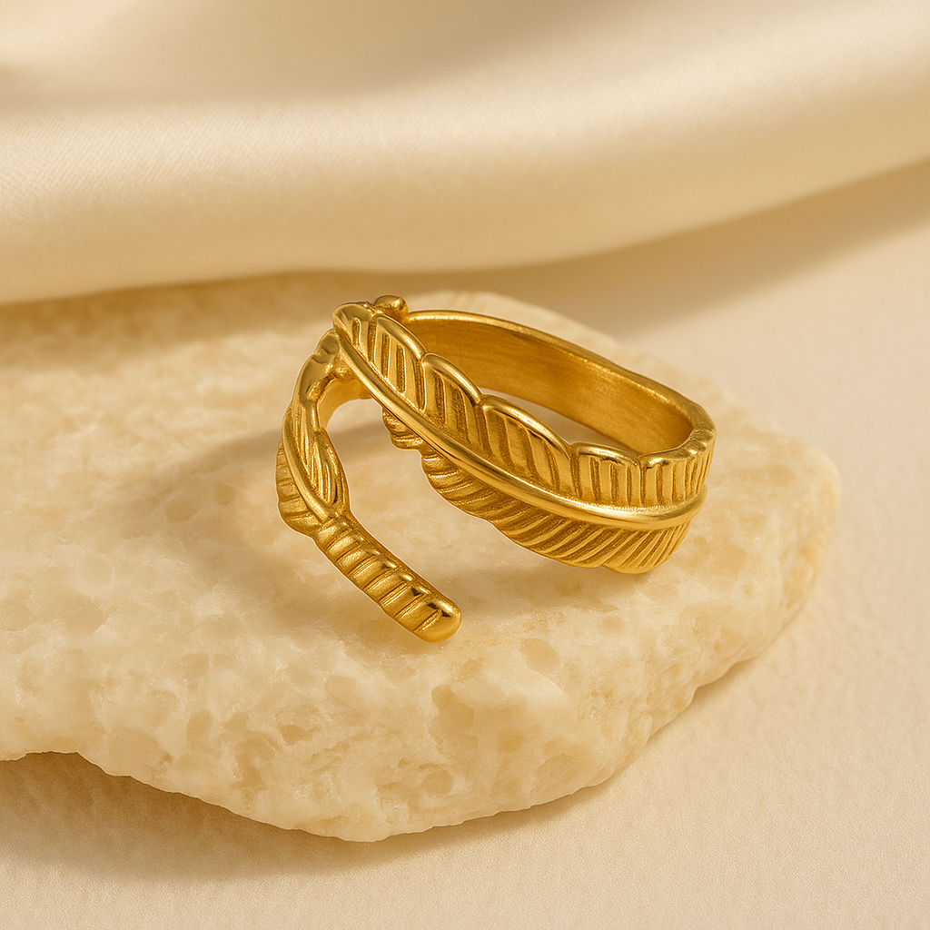 Elevate your everyday look with the Plume Gold Ring, a delicately sculpted wrap design inspired by the elegance of a feather’s natural form. Crafted in high-polish gold stainless steel, it curves gracefully around the finger. Lightweight, adjustable, and effortlessly sophisticated. Perfect for stacking or making a quiet statement, this piece embodies Cristl’s signature blend of modern luxury and timeless simplicity.