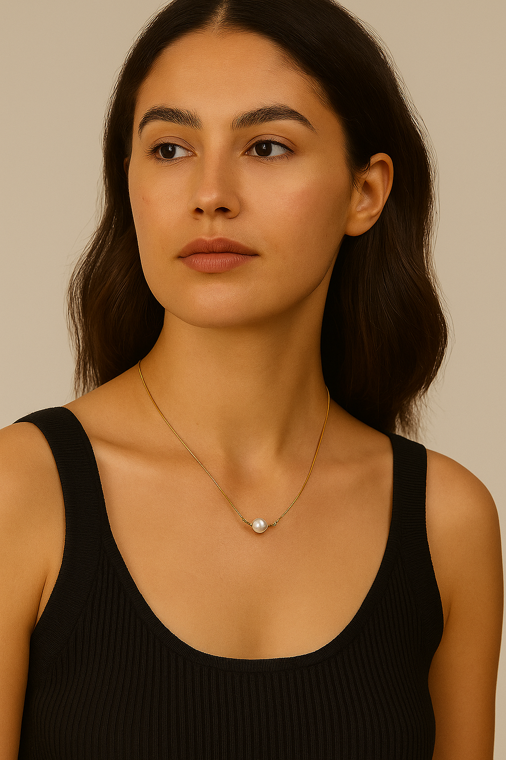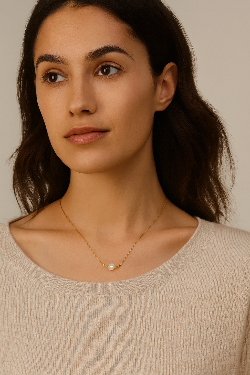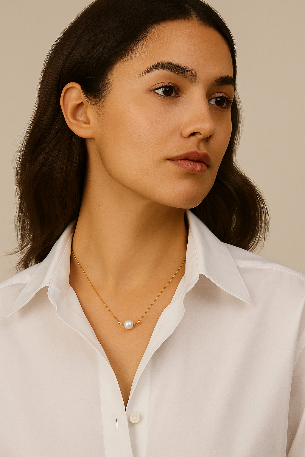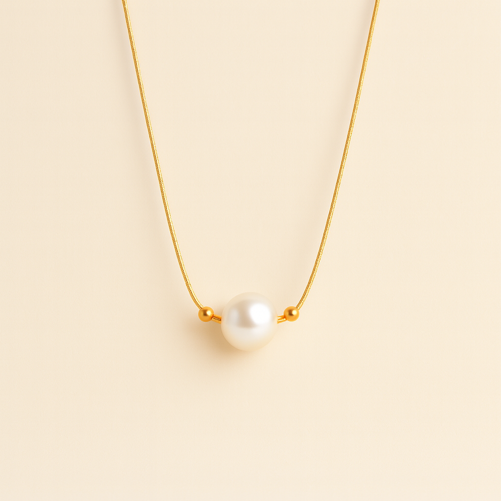 Grace in its purest form. The Serenity Pearl necklace celebrates the beauty of simplicity, where a single luminous pearl rests effortlessly on a fine gold-toned chain. Balanced by two polished beads, the design embodies harmony and timeless elegance.