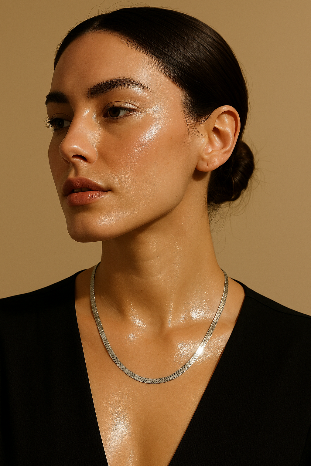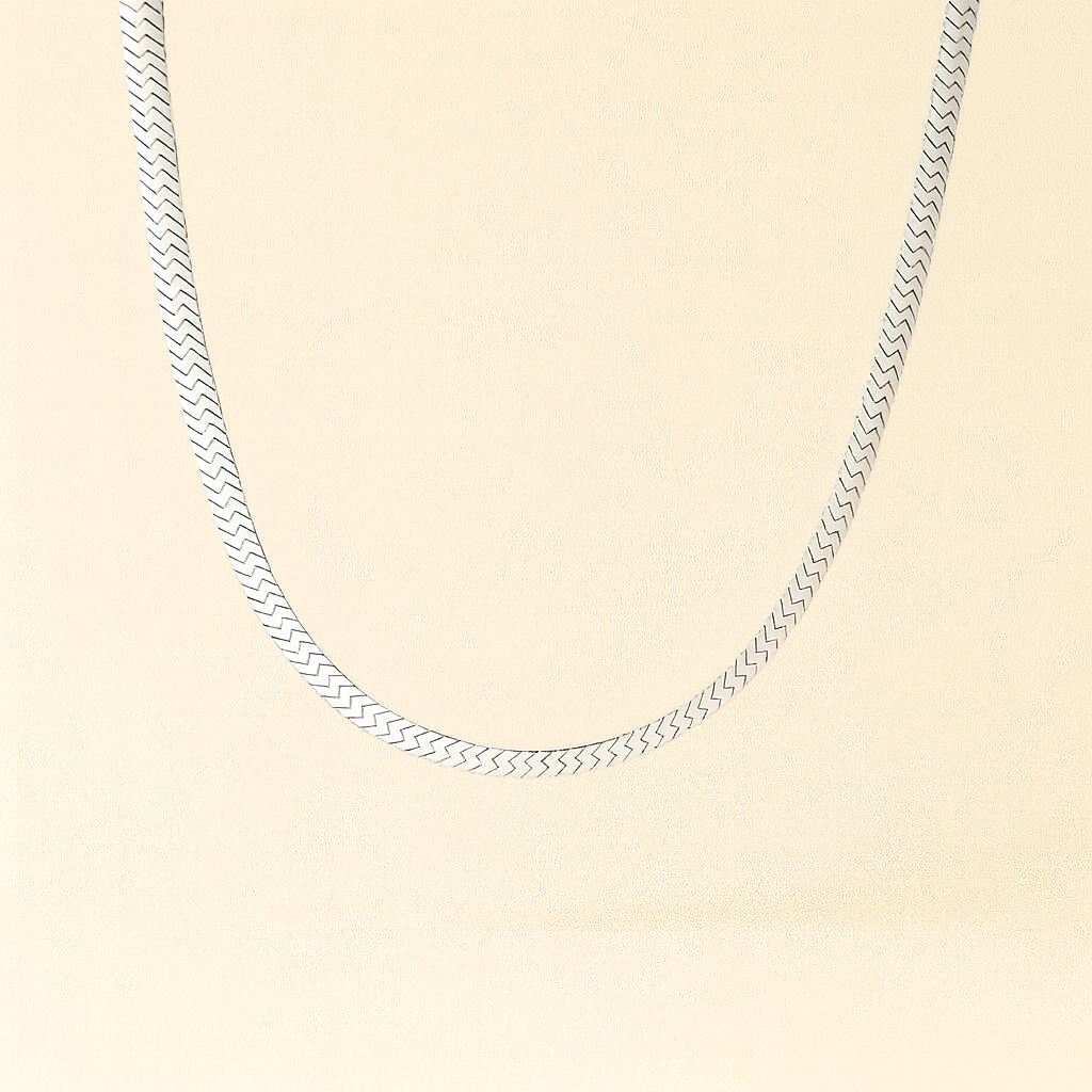 Effortless elegance in its most versatile form. The Silver Herringbone Necklace in 4mm glimmers with a smooth, luminous finish that lies perfectly flat against the skin. Subtly slimmer yet full of character, it adds a touch of polished sophistication to any look. From everyday essentials to evening refinement. Crafted for those who favor understated radiance.